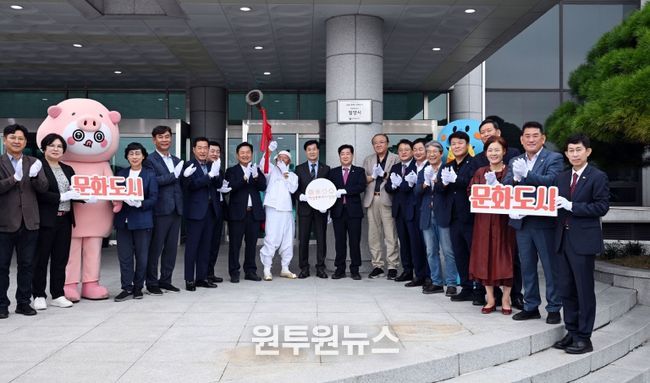 (원투원뉴스) 경남 밀양시는 13일 시청 중앙현관에서 밀양시, 밀양시의회, 문화도시센터 등 관계자 20여 명이 참석한 가운데 ‘2025 올해의 문화도시’ 현판 제막식을 개최했다고 밝혔다.