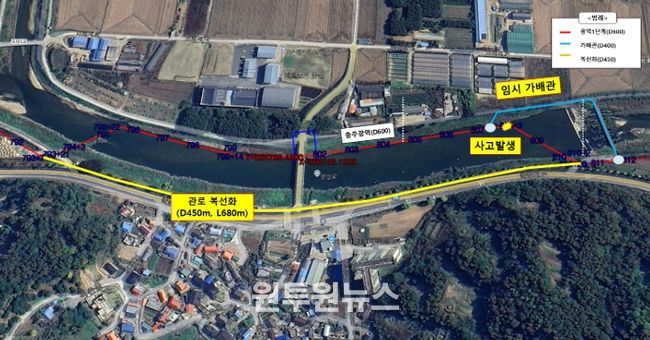 한국수자원공사는 기존 누수 관로에 대한 보강 설계를 마친 상태이며, 10월 중 가배관 철거 등 복구 작업을 완료할 예정이다.