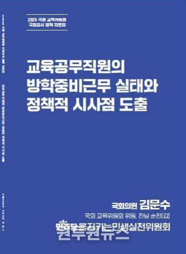 국회 교육위원회 소속 더불어민주당 김문수 의원(전남 순천갑)은 더불어민주당 을지로위원회의 의뢰로 작성된 '교육공무직원의 방학중비근무 실태와 정책적 시사점 도출' 보고서를 통해, 방학 중 급식노동자 등 비근무자의 경제적 불안정이 구조적으로 고착화되고 있음을 확인했다고 밝혔다.