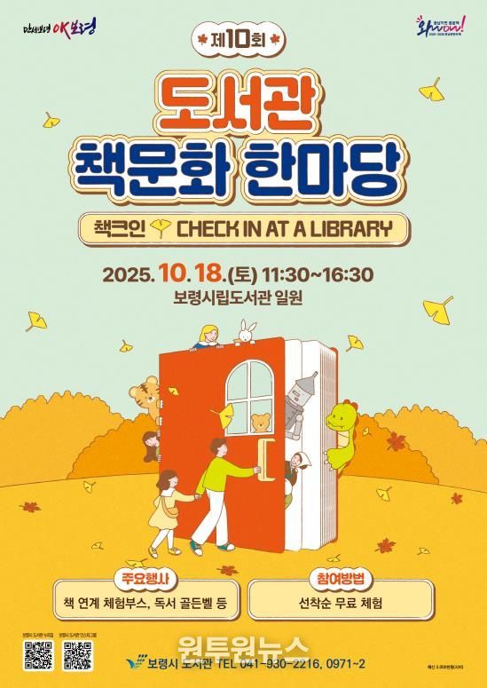 (원투원뉴스) 보령시는 오는 18일 오전 11시 30분부터 오후 4시 30분까지 보령시립도서관 일원에서 ‘제10회 도서관 책문화 한마당’을 개최한다.