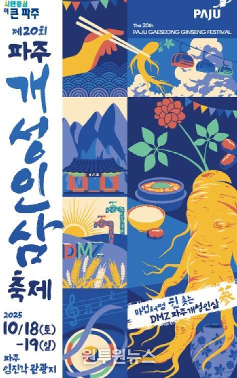 (원투원뉴스) 파주개성인삼축제가 오는 18일부터 19일까지 이틀간 임진각관광지에서 열린다. 특히 이번 축제는 체험과 먹거리 공간을 대폭 확장하고, 다채로운 프로그램을 마련하는 등 예년보다 풍성한 축제로 기획됐다는 게 파주시의 설명이다.