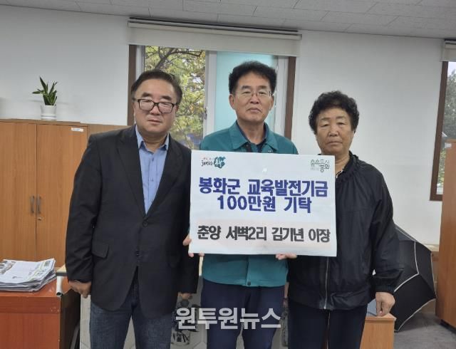(원투원뉴스) 춘양면 서벽2리 김기년 이장은 지역 인재 육성과 교육환경 개선을 위한 뜻을 모아 지난 13일 봉화군 교육발전기금으로 100만 원을 기탁했다.
