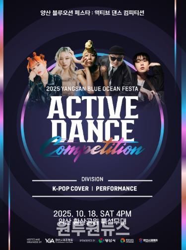 (원투원뉴스) 양산시는 오는 18일 황산공원 특설무대(황산공원 문주광장-물금리 792-3번지 일원-)에서 '2025 양산 블루오션 페스타 액티브 댄스 컴피티션'을 개최한다고 밝혔다.