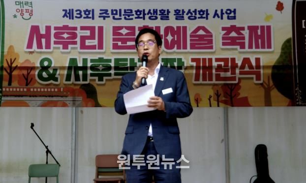 (원투원뉴스) 양평군 서종면은 지난 11일 서후리 마을회관 일원에서 ‘제3회 서후리 문화예술축제 및 탁구장 개관식’을 성황리에 개최했다.