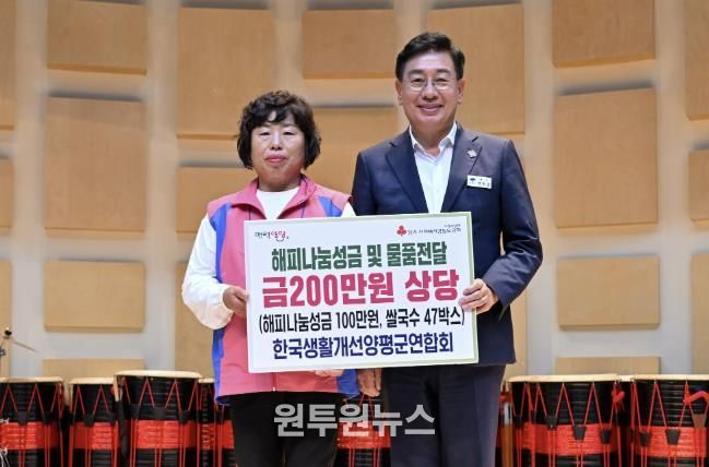 (원투원뉴스) 한국생활개선양평군연합회는 지난 9월 30일부터 10월 1일까지 강릉 한국여성수련원에서 열린 ‘2025년 생활개선양평군연합회 한마음대회’에서 쌀국수 47박스와 현금 100만 원, 총 200만 원 상당의 해피나눔성금을 기탁했다고 밝혔다.