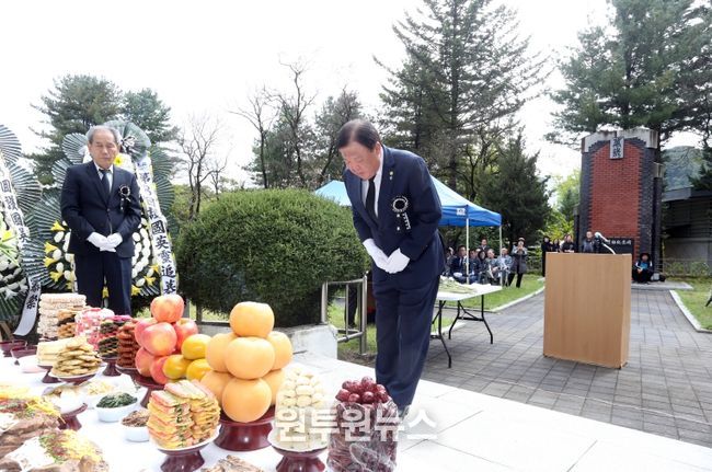 (원투원뉴스) 홍천군은 10월 14일 오전 11시 무궁화공원 내 현충탑에서 ‘제8회 호국정신 함양 전몰군경 호국영령 추모제’를 거행했다.