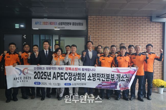(원투원뉴스) 경상북도 소방본부는 2025년 에이펙(APEC) 정상회의의 성공적 개최와 참가국 정상단의 안전 확보를 위해 지난 13일 경주소방서 대회의실에서 ‘에이펙(APEC) 소방작전본부 출범식’을 가졌다.