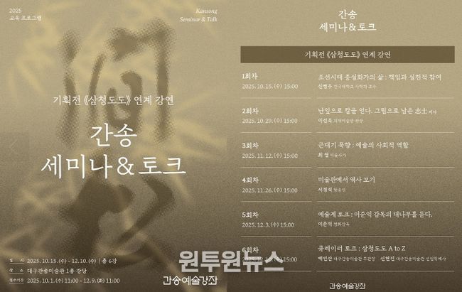 (원투원뉴스) 대구간송미술관은 광복 80주년 기념 기획전 《삼청도도 – 매·죽·난, 멈추지 않는 이야기》와 연계하여 ‘간송예술강좌: 세미나 · 토크’를 운영한다.