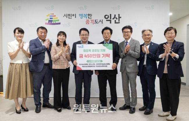 (원투원뉴스) 익산시는 지역 노인일자리 수행기관 5곳이 미등록 경로당 지원을 위해 성금 450만 원을 기탁했다고 14일 밝혔다.