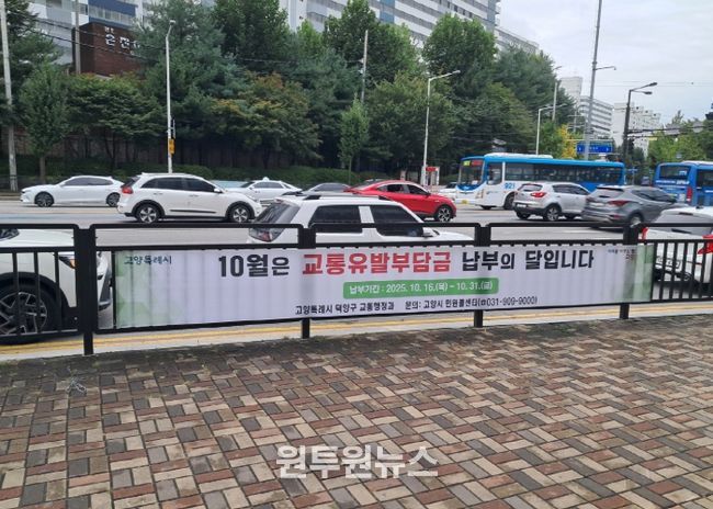 (원투원뉴스) 고양특례시 덕양구는 2025년도 교통유발부담금 정기분 6,145건, 약 63억 원을 부과했다고 밝혔다.