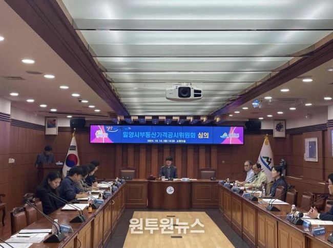 (원투원뉴스) 경남 밀양시는 14일 시청 소회의실에서 2025년 7월 1일 기준 개별공시지가 결정·공시를 위한 부동산가격공시위원회를 개최했다고 밝혔다.
