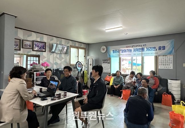 (원투원뉴스) 영주시는 지난 14일 문정동 경로당에서 시민들이 보다 편리하게 지적민원을 해결할 수 있도록 ‘찾아가는 지적민원현장방문처리반’을 운영해 현장에서 민원 상담과 처리를 진행했다.