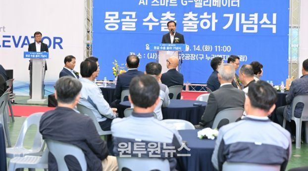 (원투원뉴스) (사)승강기밸리기업협의회(회장 신양건)는 지난 14일 스마트 승강기 공동모델인 G-엘리베이터의 몽골 수출을 기념하는 행사를 협의회 제조공장에서 관계 기관과 기업 관계자 30여 명이 참석한 가운데 개최했다.