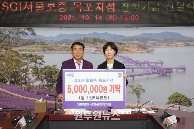 (원투원뉴스) SGI서울보증(대표이사 이명순) 목포지점이 10월 14일, 신안군장학재단(이사장 김대인)에 신안군 인재육성을 위한 장학기금 500만 원을 기탁했다.