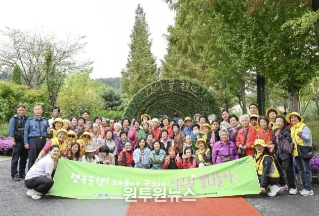(원투원뉴스) 아산시 영인면 행복키움추진단은 지난 14일 피나클랜드(대표 류일우)의 후원으로 관내 어르신 45명을 모시고 ‘오천만송이 국화 꽃나들이’ 행사를 실시했다.