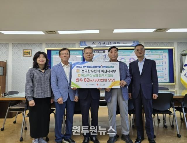 (원투원뉴스) 아산시는 (사)전국한우협회 아산시지부가 지난 14일, 관내 사회복지시설을 지원하기 위해 한우 82kg(약 300만 원 상당)을 후원했다고 밝혔다.