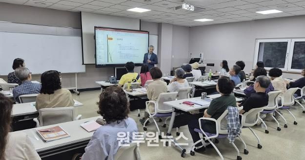 (원투원뉴스) 아산시립도서관(은 지난 9월부터 운영 중인 ‘지혜학교-치유와 회복의 인문학’이 시민들로부터 큰 호응을 얻으며 성황리에 운영되고 있다고 밝혔다.