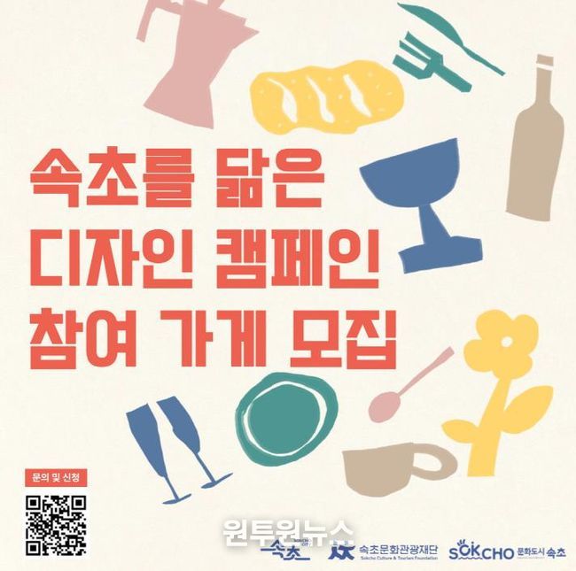 (원투원뉴스) (재)속초문화관광재단은 음식문화도시 조성 사업의 일환으로 ‘속초를 닮은 디자인 캠페인’에 참여할 지역 식당 20개소를 오는 19일 17시까지 모집한다.