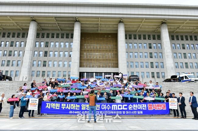 (원투원뉴스) 여수시의회는 10월 14일 MBC본사와 국회에 항의 방문하며 여수MBC 순천 이전 철회를 강력히 촉구했다.