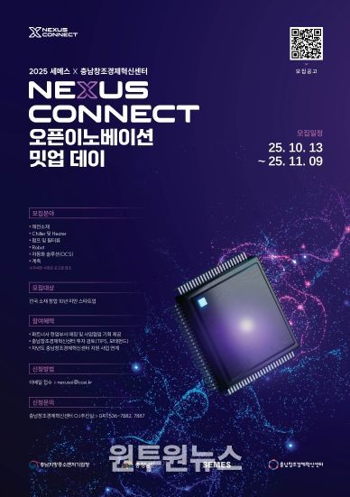 (원투원뉴스) (재)충남창조경제혁신센터와 세메스(주)는 반도체·디스플레이 장비 혁신을 이끌 유망 스타트업을 발굴·육성하기 위해 ‘2025 세메스 × 충남창조경제혁신센터 Nexus Connect 오픈이노베이션 밋업 데이’ 참여 기업을 11월 9일까지 모집한다.