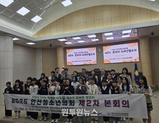 (원투원뉴스) 경기도안산교육지원청은 10월 15일 안산시의회 본회의장에서‘2025 안산청소년교육의회 조례안 발표회’를 가졌다.