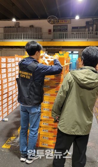 제주도는 14일부터 이틀간 자치경찰단, 수급관리센터, 행정시 등과 합동으로 3개조 10명의 합동단속반을 꾸려 서울 가락시장, 경기 구리시장, 대구 북부시장을 집중 점검했다. 전국 9대 도매시장 가운데 현재 감귤 반입량이 가장 많은 곳들이다.
