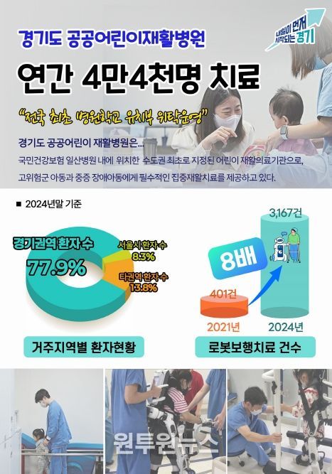 (원투원뉴스) 경기도는 공공어린이재활병원을 운영하며 지난해 장애아동 4만4천여 명에게 집중재활치료와 의료서비스를 제공했다고 19일 밝혔다.