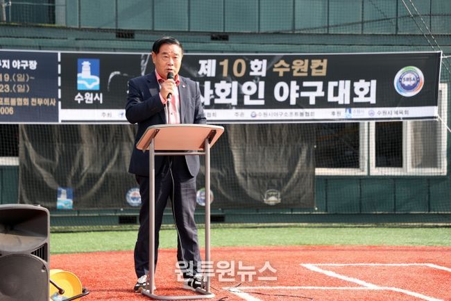 (원투원뉴스) 수원특례시의회는 10월 19일 황구지천야구장에서 열린 ‘제10회 수원컵 전국 사회인 야구대회 개회식’에 참석해 선수들을 격려했다.