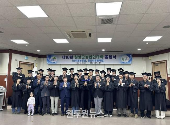 (원투원뉴스) 청양군농업기술센터는 지난 17일 농업기술센터에서 제18기 청양군농업인대학 스마트농업반 졸업식을 개최했다고 밝혔다.