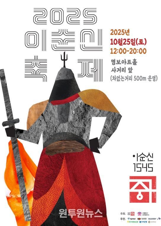 (원투원뉴스) 충무공 이순신 생가터 인근 명보아트홀 사거리 일원이 새로운 축제로 물든다. 서울 중구가 오는 25일 낮12시부터 저녁 8시까지 ‘2025 이순신 축제’를 개최한다. 올해 첫선을 보이는 축제는 주민들과 함께 ‘이순신 장군의 탄생지, 중구’의 정체성을 되새기며 ‘이순신1545 중구’ 선포, ‘철인 이순신’ 선발, 120명이 채우는 대형캔버스, 해군홍보대 공연, 205m 먹거리존 등 다채로운 프로그램을 펼친다.