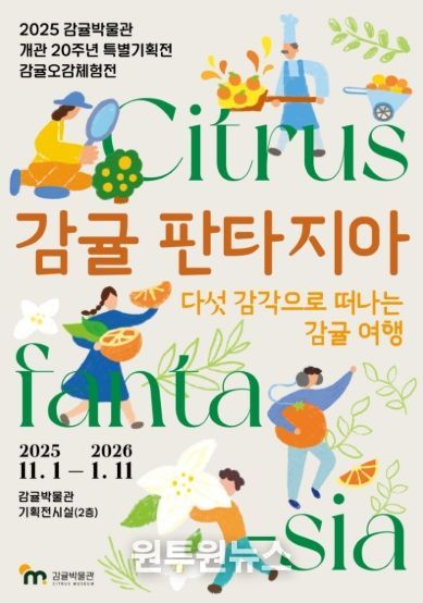 (원투원뉴스) 서귀포시 감귤박물관은 개관 20주년 맞이하여 특별기획전 '감귤오감체험전-감귤 판타지아'를 11월 1일부터 개최한다고 밝혔다.