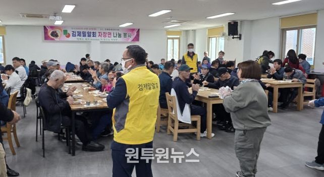 (원투원뉴스) 김제시는 김제시장애인종합복지관(관장 박승택)이 20일 김제밀알회(회장 임동석)의 따뜻한 후원과 봉사로 장애인과 가족, 이웃 주민 300명을 초청해 자장면 무료 나눔 행사를 진행했다고 밝혔다.