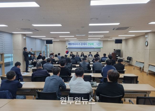 (원투원뉴스) 남양주시는 10월 20일 16시 다산행정복지센터 대회의실에서 개발행위허가 민원처리의 신속성과 투명성을 높이기 위해 ‘개발행위허가 민원 신속처리 관계자 간담회’를 개최했다.