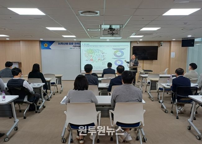 이번 교육은 단국대학교 조홍종 교수를 초빙하여 진행됐으며, AI 산업의 급격한 성장으로 인한 전력 수요 증가와 이에 따른 전력난 문제를 지방재정·정책 차원에서 어떻게 대응할 것인지 심도 있게 다루었다.