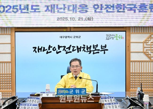 (원투원뉴스) 대구시 군위군은 10월21일 김진열 군수 주재로 군민안전을 위한 풍수해 재난 대응 2025년 안전한국훈련을 실시했다.
