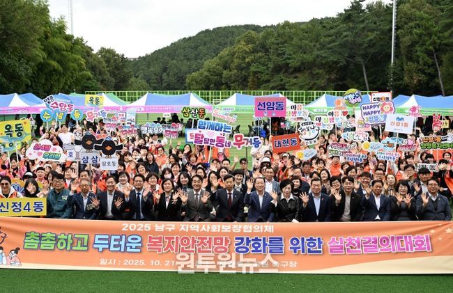(원투원뉴스) 울산 남구는 21일 선암호수공원에서 ‘2025년 남구 지역사회보장협의체 실천결의대회’를 열고 복지 사각지대 없는 촘촘한 지역복지 실현을 위한 새로운 결의를 다졌다.