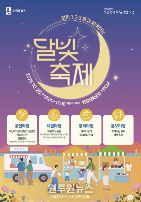 (원투원뉴스) 수원시 장안구 정자2동 주민자치회는 오는 25일, 오후 1시부터 복합문화공간 111CM에서 ‘정자1·2·3동과 함께하는 달빛축제’를 개최한다.