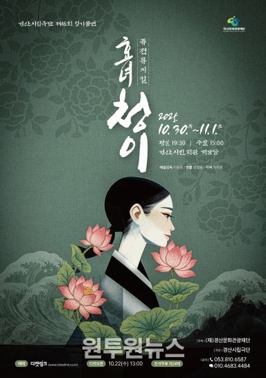 (원투원뉴스) 경산시립극단이 오는 10월 30일부터 11월 1일까지 3일간, 경산시민회관 대공연장에서 제16회 정기공연 ‘퓨전뮤지컬 '심청'’을 선보인다.