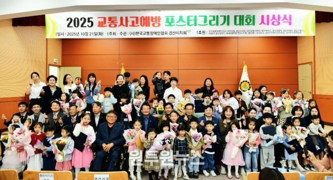 (원투원뉴스) 사)한국교통장애인협회 경산시지회(회장 송화자)는 21일 삼성현역사문화관에서 조현일 경산시장, 입상자와 가족 등 150여 명이 함께한 가운데 '2025년 교통사고 예방 포스터 그리기 대회 시상식'을 개최했다.