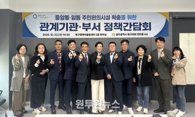 (원투원뉴스) 광주 북구의회 전미용 의원(중흥1·중흥2·신안·임·중앙동)은 22일 북구행복어울림센터에서 30여 년간 방치되어 온 국유지(유동 81-5번지)의 효율적 활용 방안을 모색하기 위한 정책간담회를 개최했다고 밝혔다.