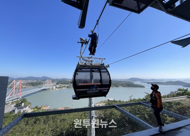 현장은 긴장감 속에서도 질서정연했다. 구조대는 접근 경로와 진입 순서를 차근히 점검하며, 현장 안전선 확보와 인명 이송 동선을 꼼꼼히 확인했다. 명량해상케이블카 직원들은 비상 방송과 무전으로 상황을 전파하고, 운행 통제 및 탑승객 안내를 동시에 수행하며 숙지 된 내부 매뉴얼대로 직원들이 움직이는지를 점검했다.