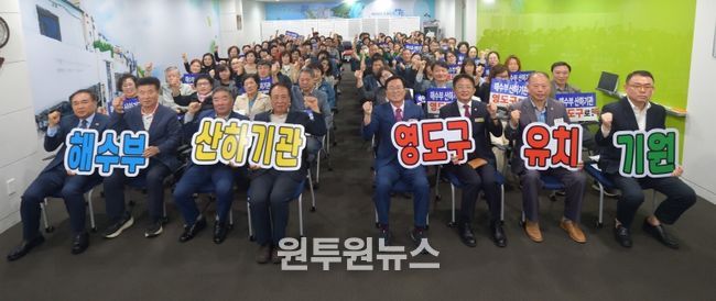(원투원뉴스) 부산 영도구 내 5개 주민단체(영도구주민자치위원장협의회, 영도구통장협의회, 영도구새마을회, 바르게살기운동영도구협의회, 한국자유총연맹영도구지회)는 지난 10월 22일 영도구청 대회의실에서 '해양수산부 산하기관 영도구 유치 염원 결의대회'를 개최했다.