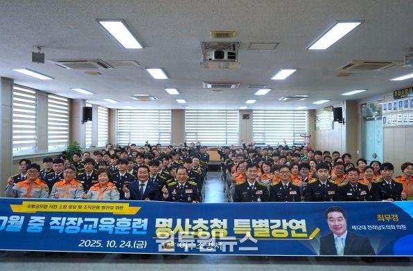 (원투원뉴스) 여수소방서(서장 서승호)는 10월 24일 본서에서 전 직원 및 의용소방대원을 대상으로 청렴·소통 강화 및 전기차 화재대응 특별교육, 명사 초청 공직자 교육을 실시했다.
