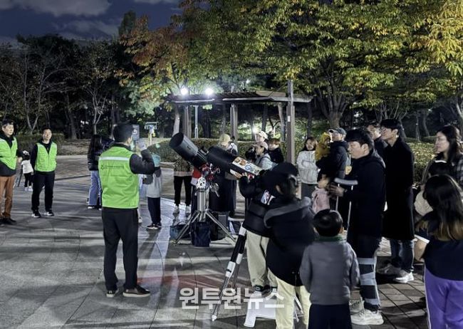 (원투원뉴스) 수원시 장안구 정자1동 주민자치회는 지난 27일 정자공원 일대에서 천체 관측 체험프로그램인 ‘달보기 별보기’ 행사를 추진했다.