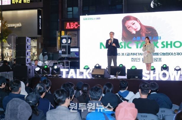 (원투원뉴스) 유득원 대전시 행정부시장은 31일 중구 은행동 으능정이 스카이로드에서 열린 ‘뮤직토크쇼’에서 시민 700여 명과 가을밤의 정취를 만끽했다.