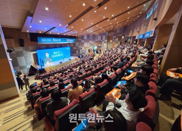 (원투원뉴스) 광주과학기술원(GIST) 오룡관이 시민들의 열기로 가득 찼다. 지난 1일, 광주시의회 더불어민주당 박수기 원내대표(광산 5)가 자신의 정치철학을 담은 저서 『연결의 정치』 출간을 기념해 북콘서트를 개최했다.