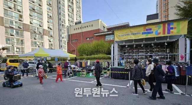 (원투원뉴스) 수원시 팔달구 우만1동은 지난 31일 우만주공3단지아파트에서 누구나 누리는 문화놀이터, ‘누리터’를 운영하여 주민들로부터 큰 호응을 얻었다.