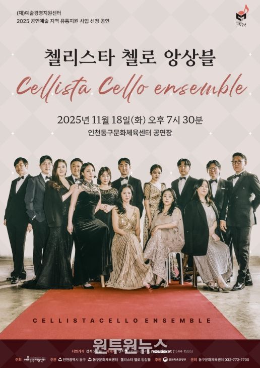 (원투원뉴스) 인천 동구문화체육센터는 오는 18일 오후 7시 30분 '첼리스타 첼로 앙상블' 공연을 선보인다고 밝혔다.