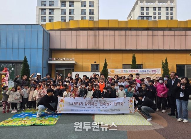 (원투원뉴스) 인천 서구 다함께돌봄센터 7호점과 검단노인복지관은 지난 10월 30일 돌봄센터 앞마당에서 ‘세대공감+함께’ 민속한마당을 행사를 개최했다.