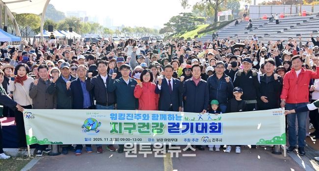 (원투원뉴스) 진주시는 2일 칠암동 남강 야외무대에서 시민들의 뜨거운 참여 속에 ‘워킹진주와 함께하는 지구건강 걷기대회’를 성황리에 개최했다.